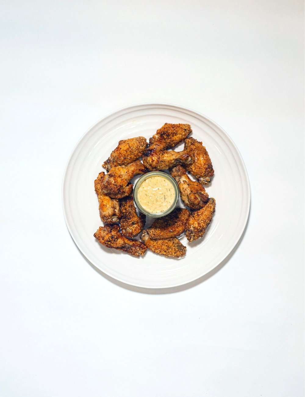 1. In a large bowl, toss wings in oil and season generously with salt and pepper. Add garlic powder and parmesan cheese and toss until evenly coated.