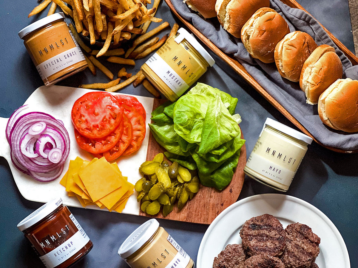 Enjoy your tasty burger bar with MNMLST condiments!