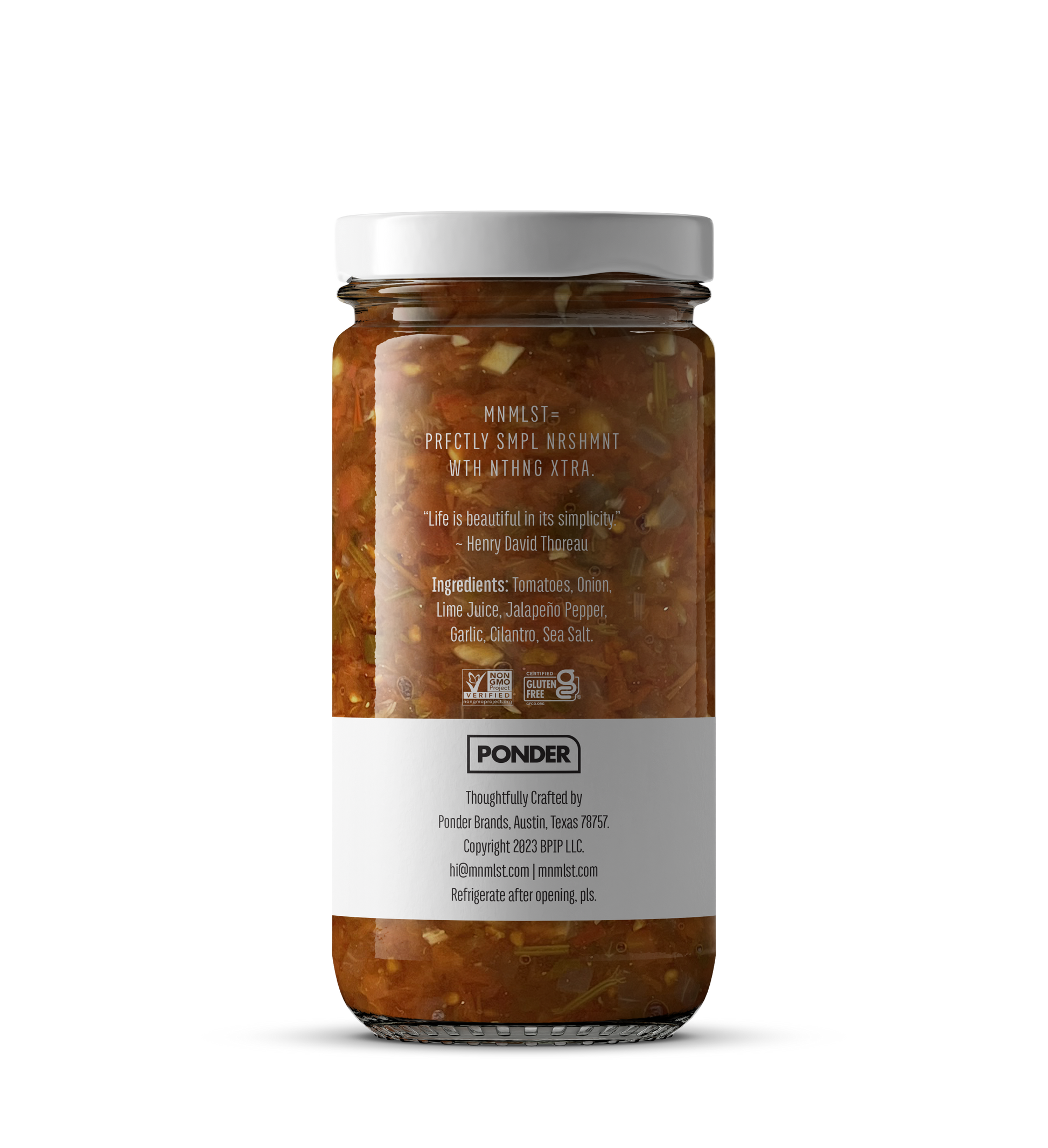 INGREDIENTS: Tomatoes, Onion, Lime Juice, Jalapeño Pepper, Garlic, Cilantro, Sea Salt.