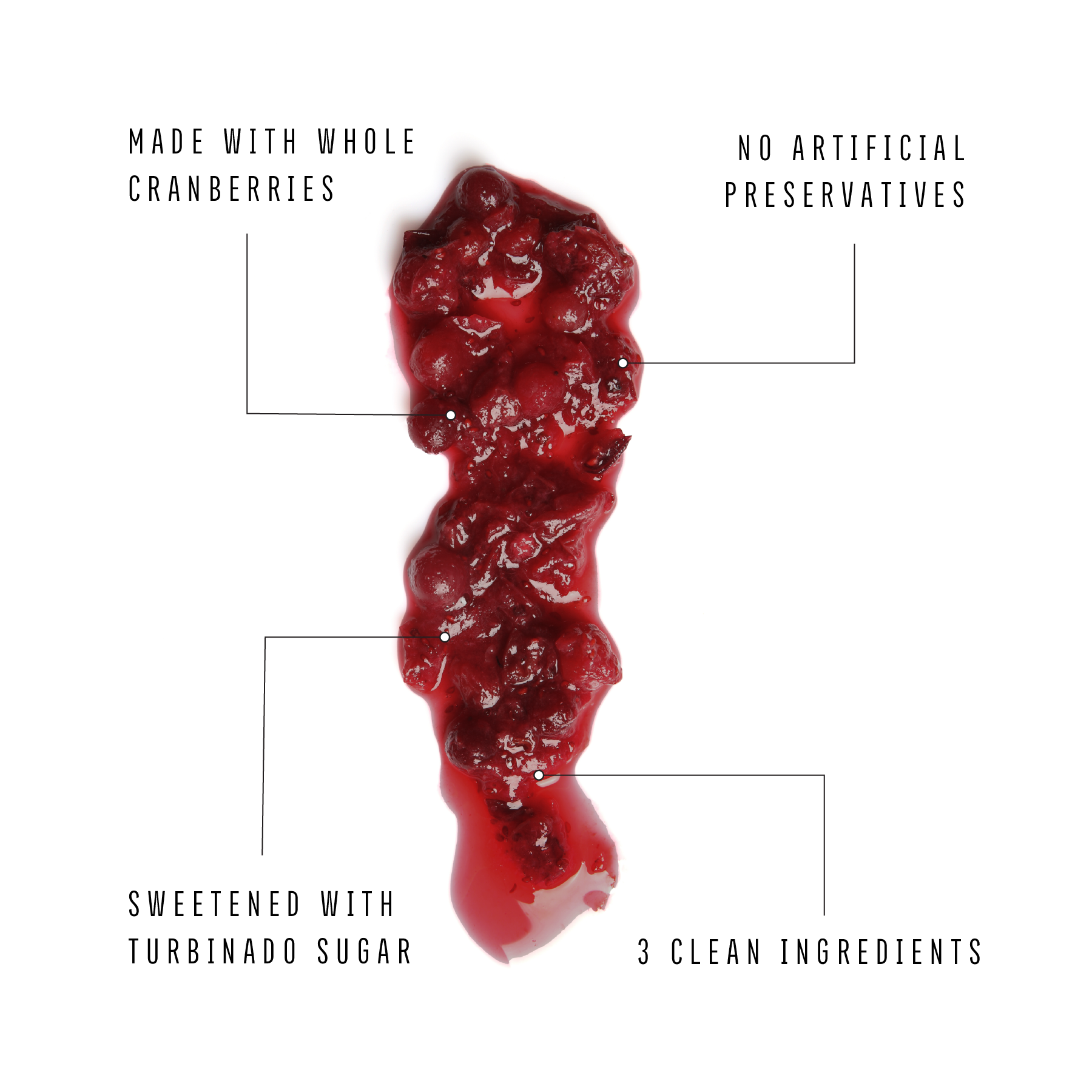 INGREDIENTS: Whole Cranberries, Cranberry Juice, Turbinado Sugar.